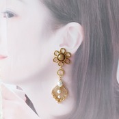 ヴィンテージのお花形ボタンをリメイクし、華やかさと個性を引き立てるデザインに仕上げました。