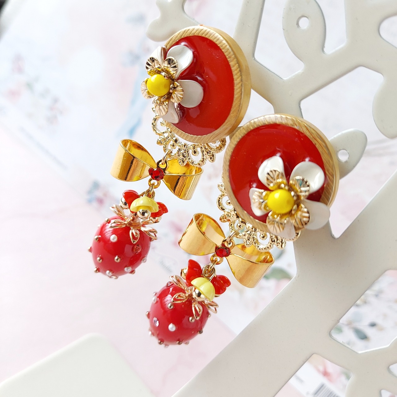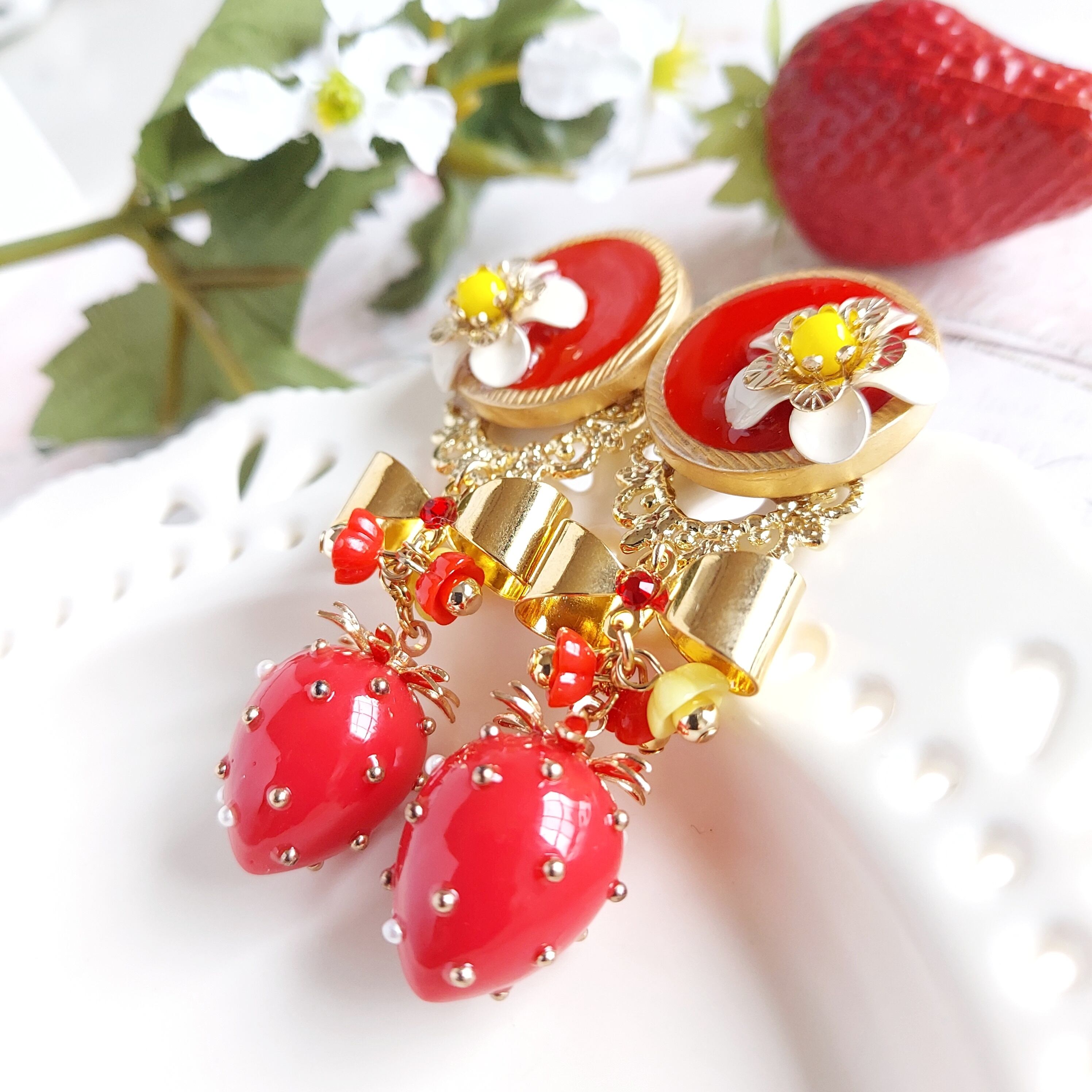 甘酸っぱいきらめき♡苺とリボンの揺れるピアス