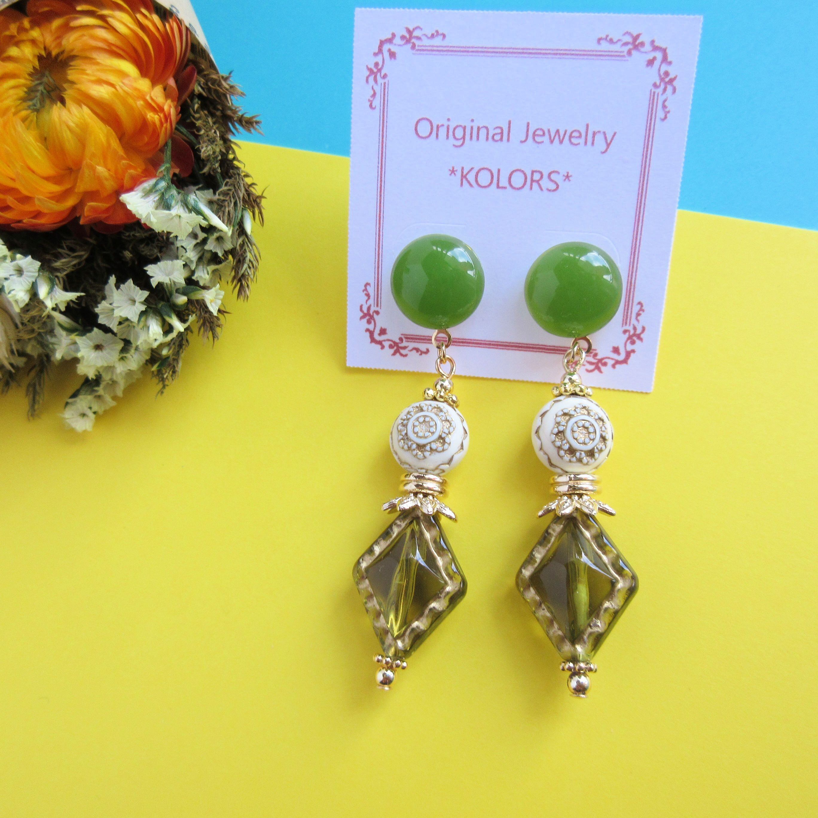 2021年の春夏のトレンドカラー”グリーン”のドイツビーズを取り入れてデザインしました。