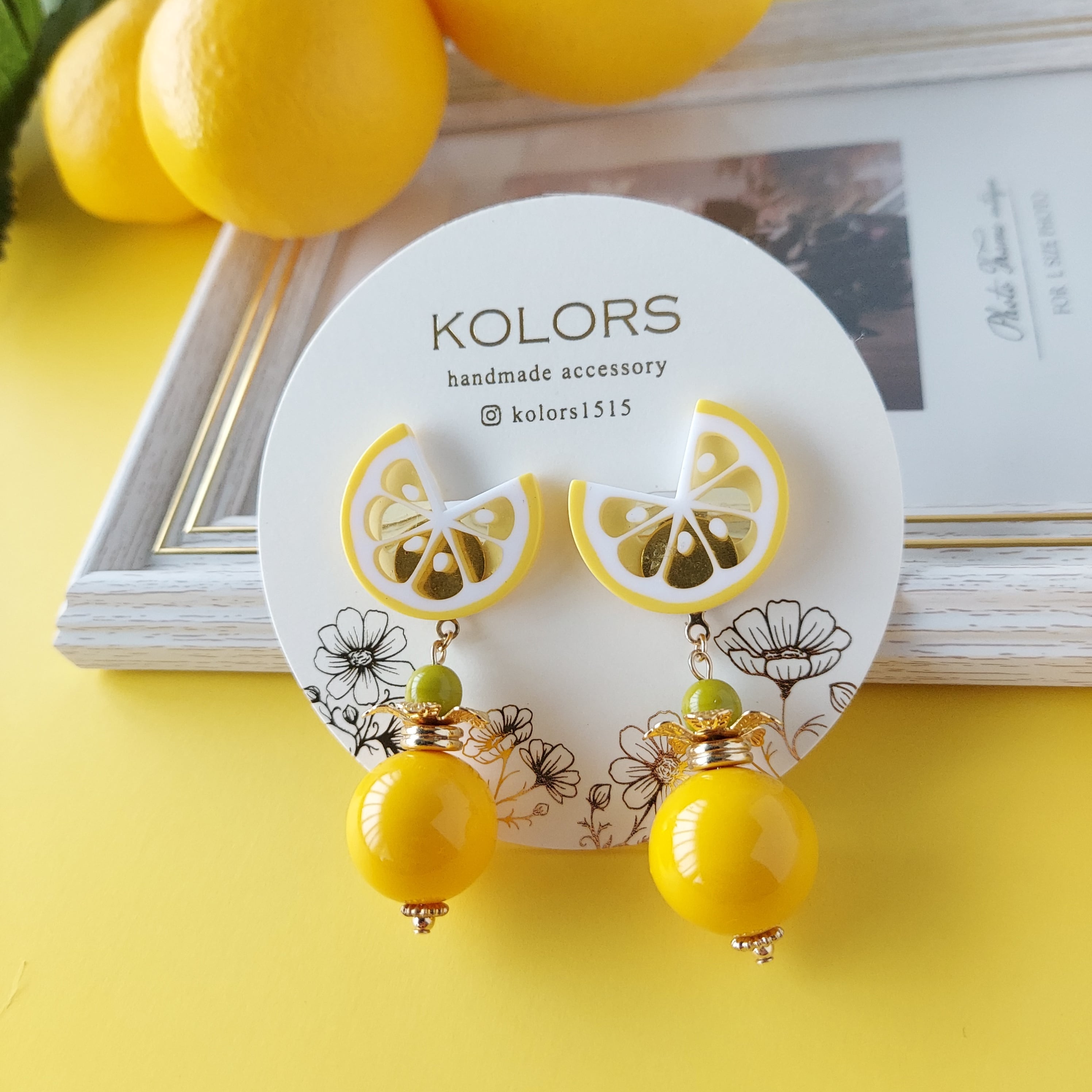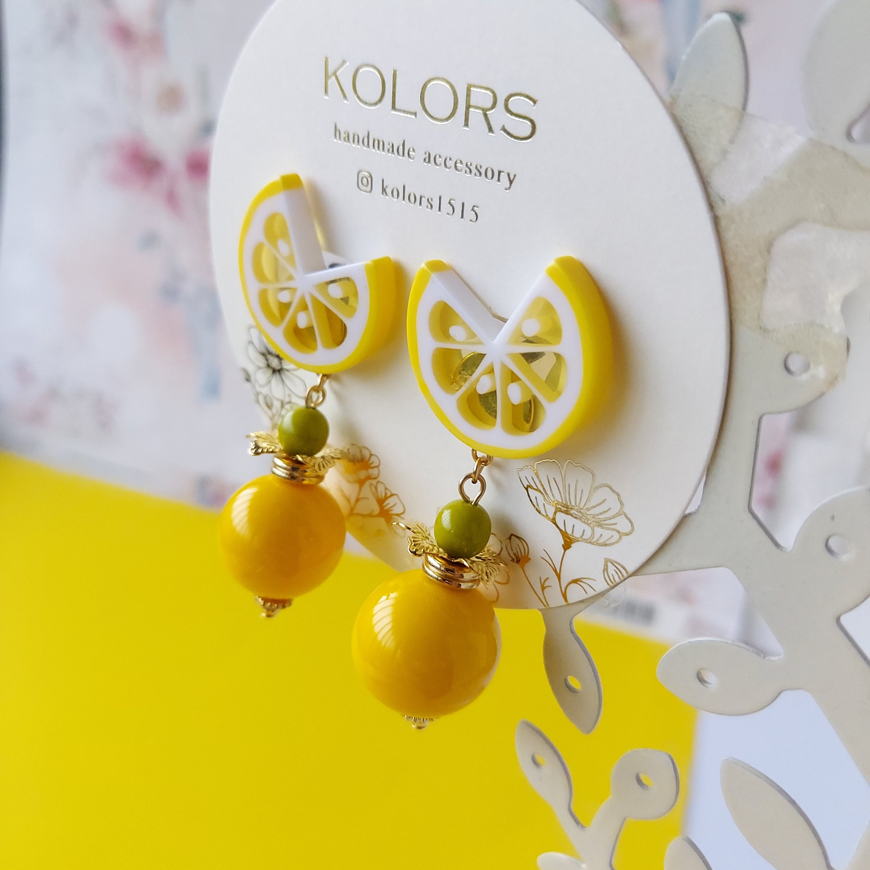 レモン / れもん / lemon / 黄色 / イエロー / ジューシー / ビタミンカラー / 夏 / summer / イヤリング / ポストピアス / 普段使い / 大人可愛い / 大ぶり / お出かけ / 女子会 / おしゃれ女子 / フルーツ