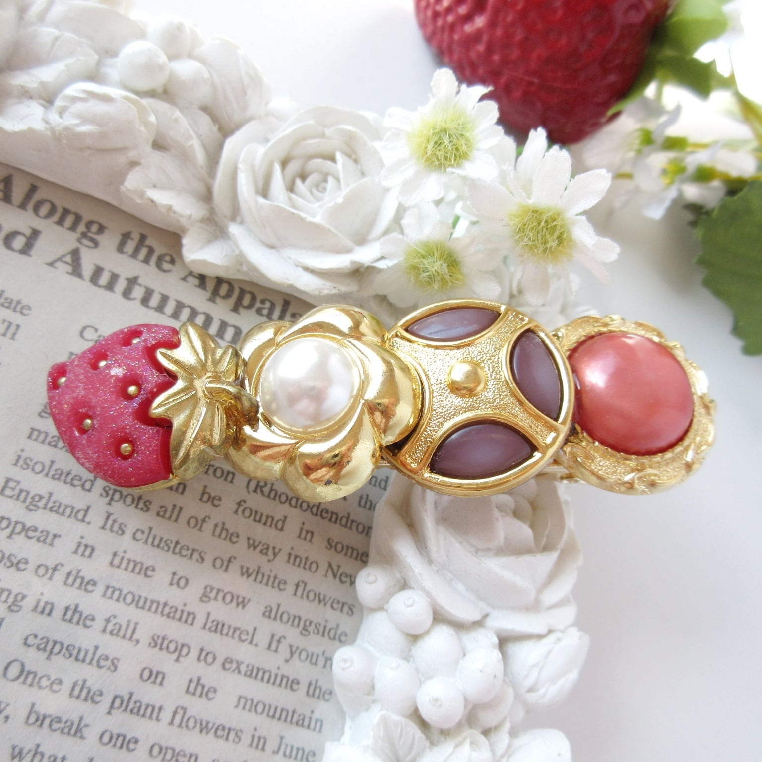 苺ボタンと春色ボタン4連ヘアクリップ(No2)