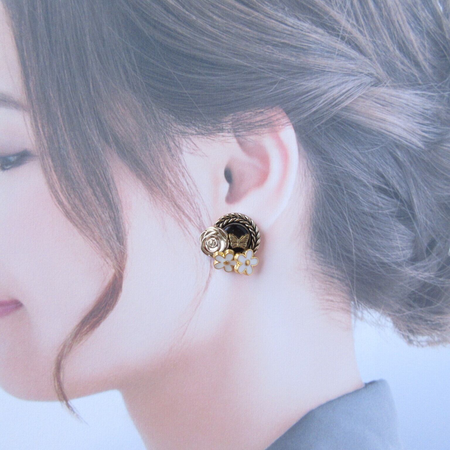 ある日、美容院で雑誌を見ていたら、外国人のモデルさんがステキなイヤリングを着けていました。素材はボタンでした。