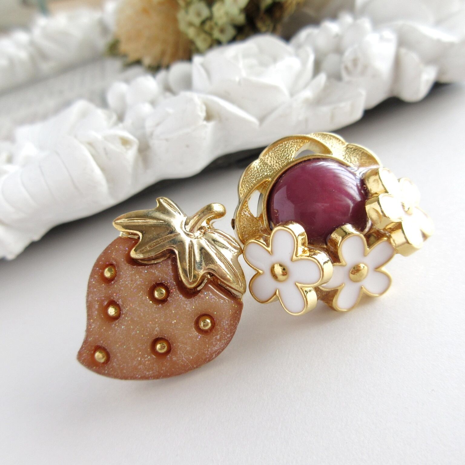 マットコーティングした苺ボタンの対にはぷっくりボタンにお花ボタンを可愛らしく盛り合わせました。