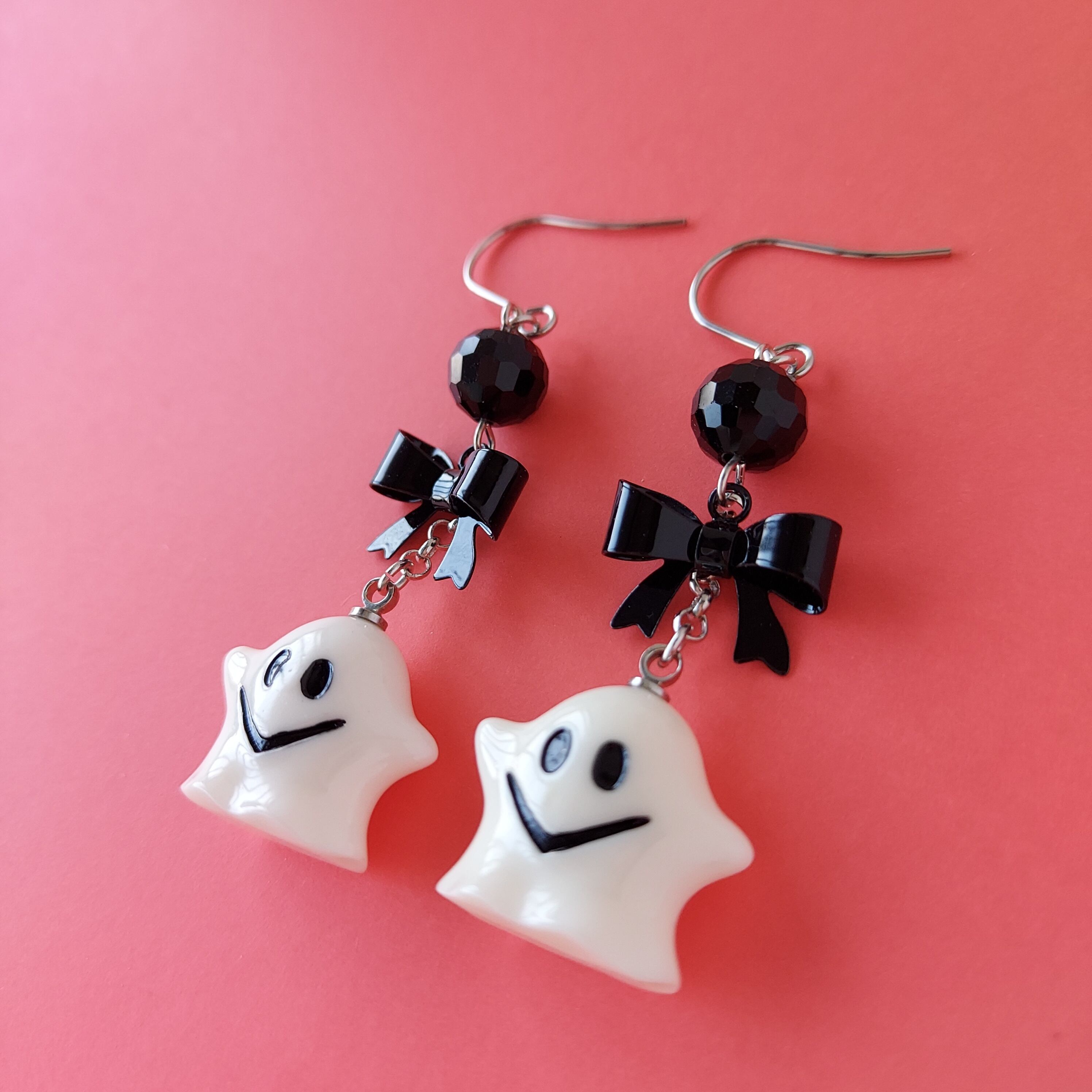【ピアス or イヤリング 変更可】【ハロウィンお化け&リボンピアス・イヤリング】 ハンドメイドピアス/ハンドメイドイヤリング/ 揺れるピアス/ 揺れるイヤリング/ハロウィン/ハロウィンピアス/ハロウィンイヤリング