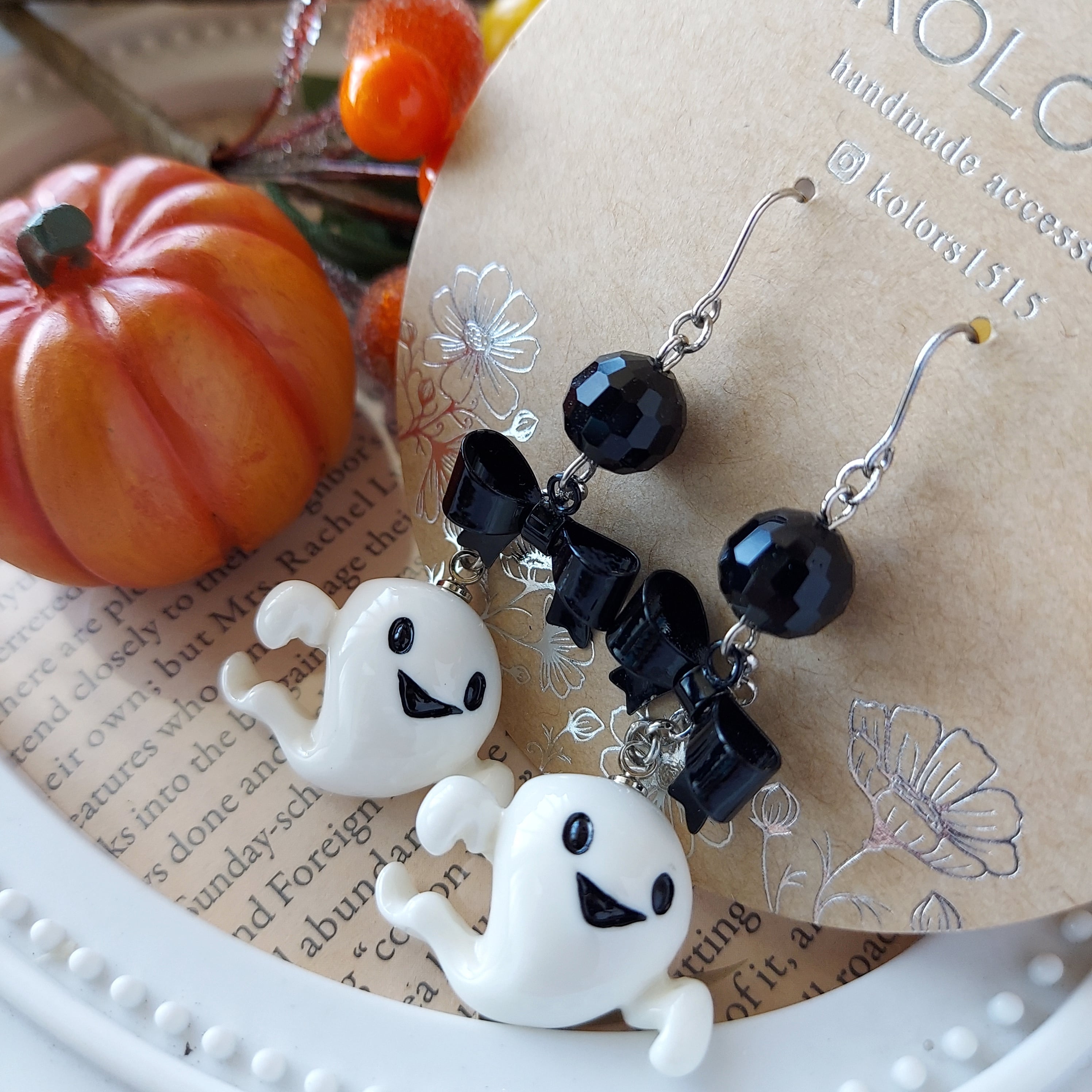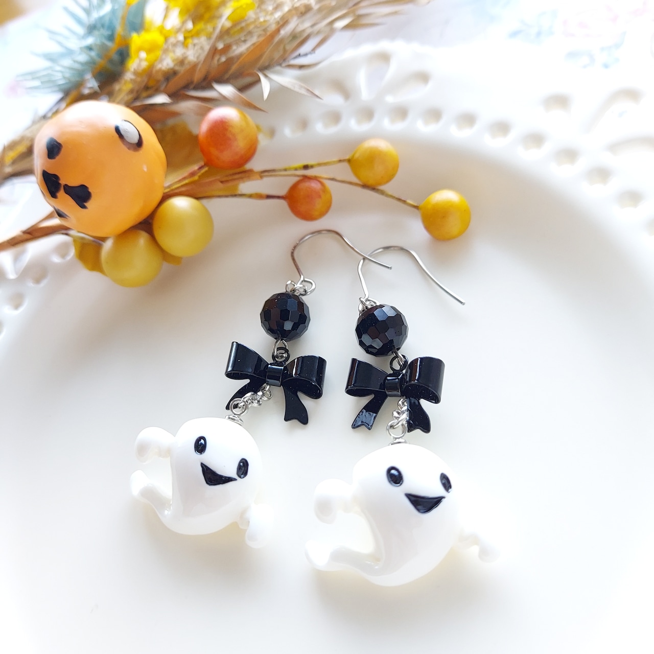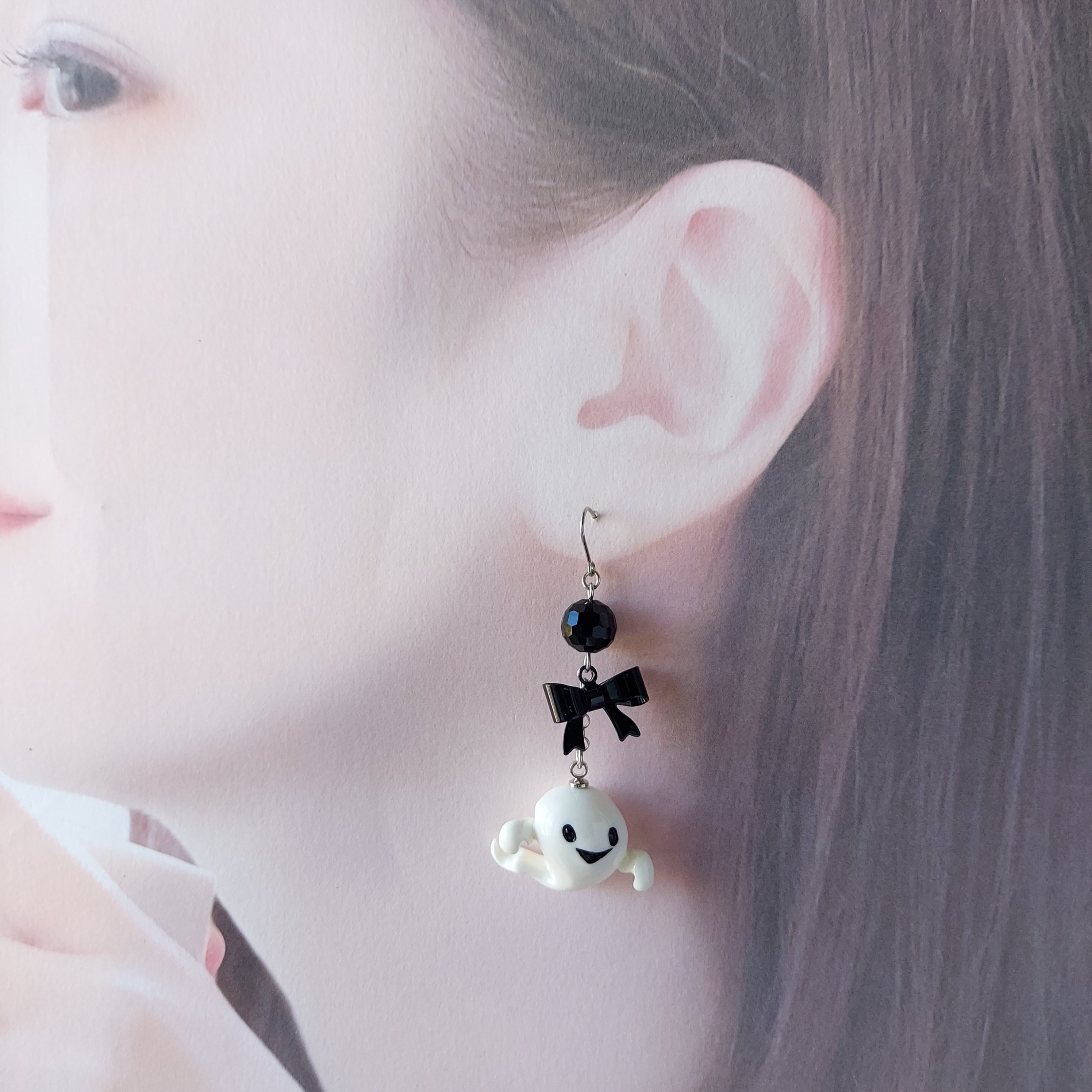 【ハロウィン ニョロニョロお化け&リボンピアス・イヤリング】