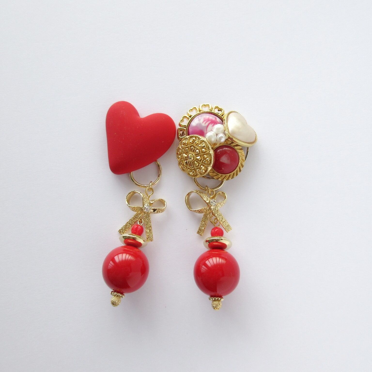 大きな一粒ハートに合わせて、可愛らしいカラーと形のボタンを盛り合わせて