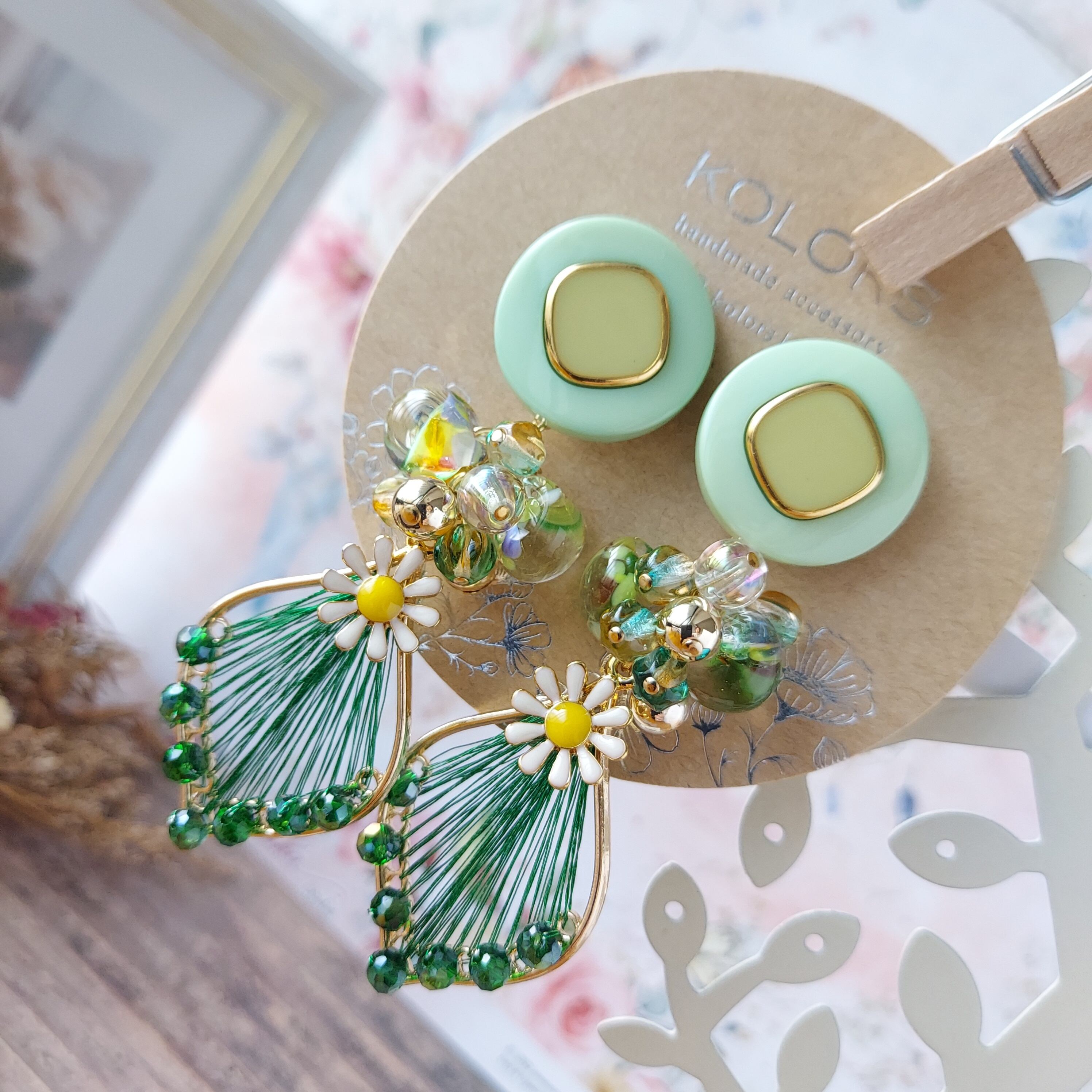若草色のピアス・イヤリングは、季節を問わず使えるアイテムとして、多くの方からご愛用いただいています。素敵な若草色のアクセサリーで、ワンランク上のおしゃれを楽しんでみませんか。