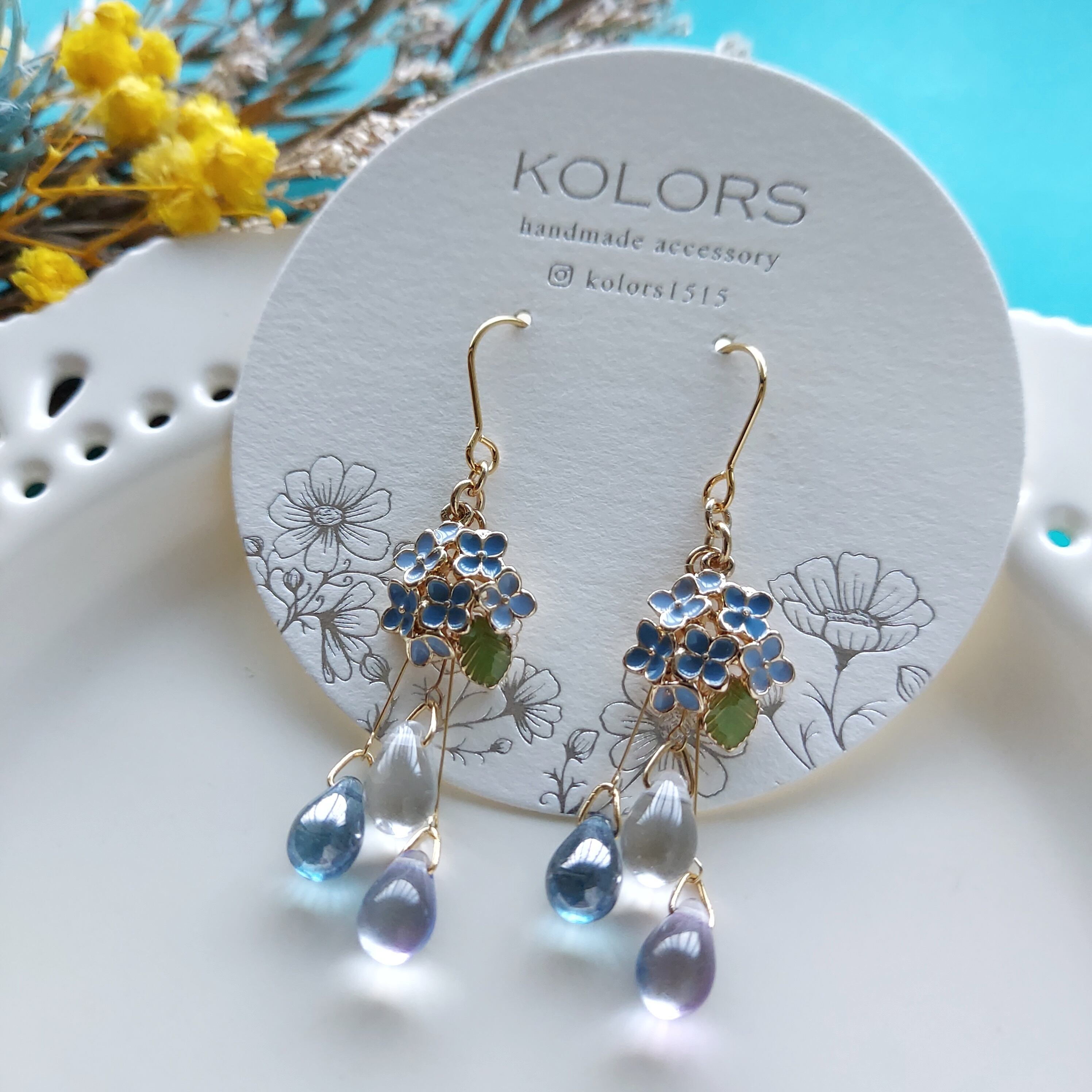 【紫陽花と雨の雫 ピアス・イヤリング】