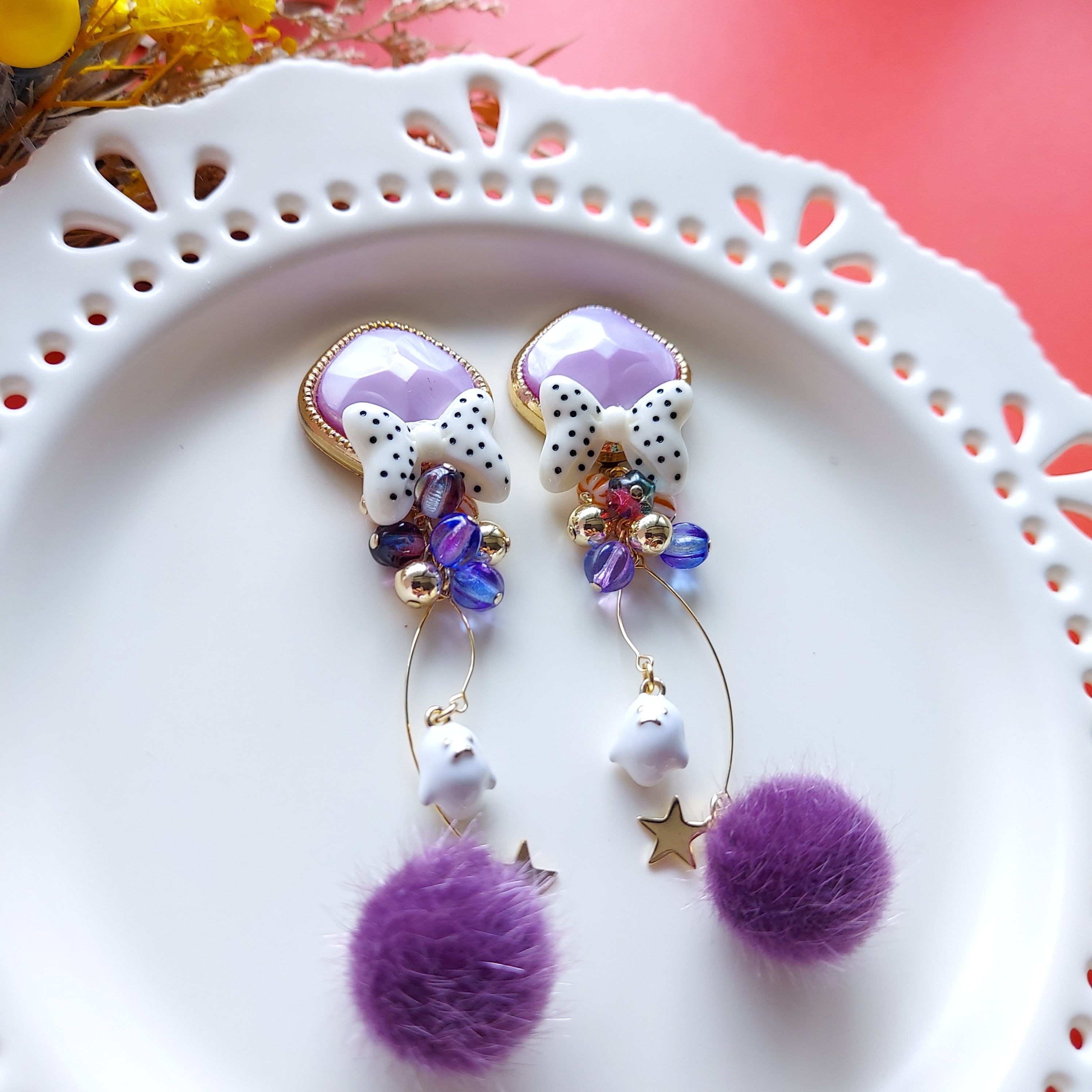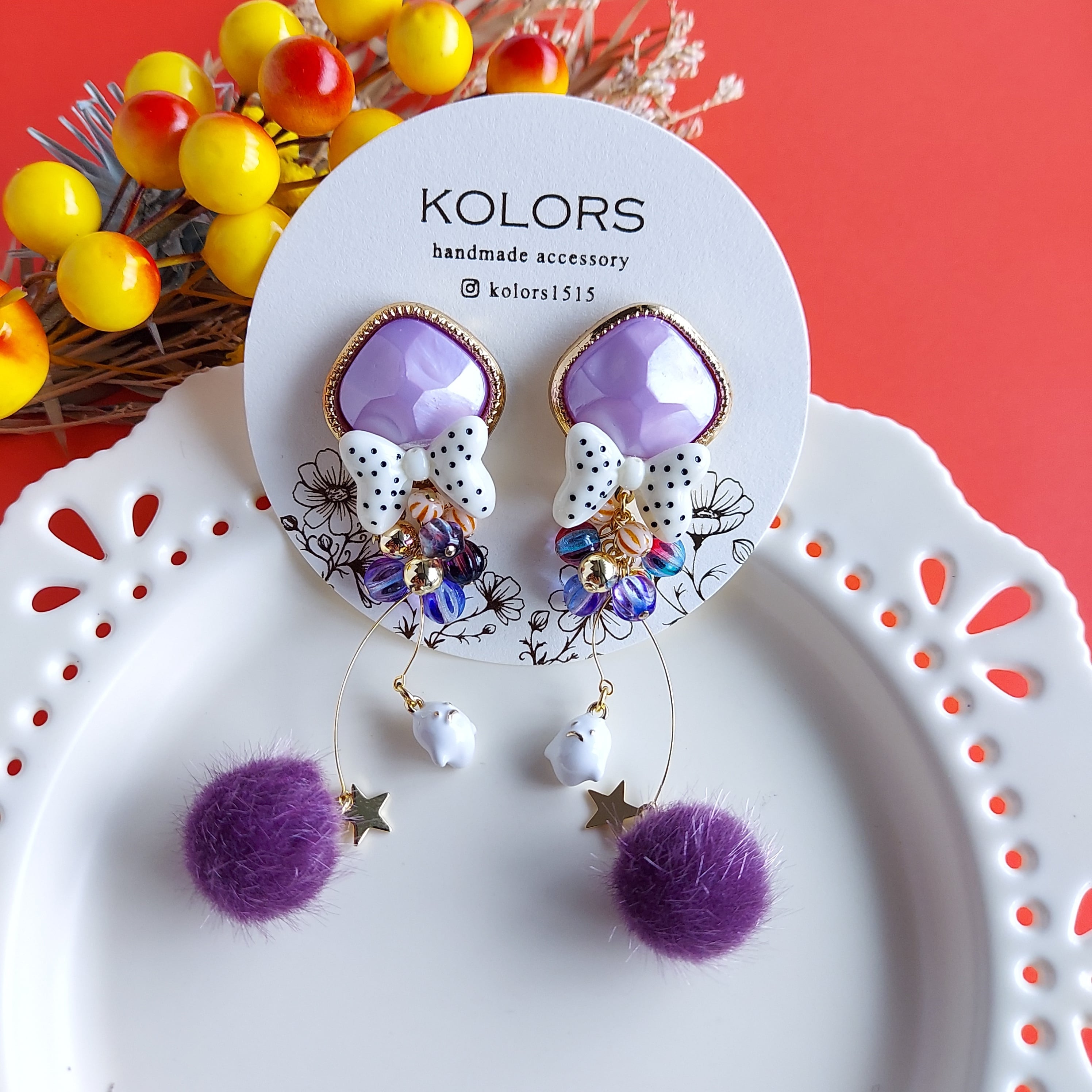 【ハロウィン お化け&パープルモコモコピアス・イヤリング】