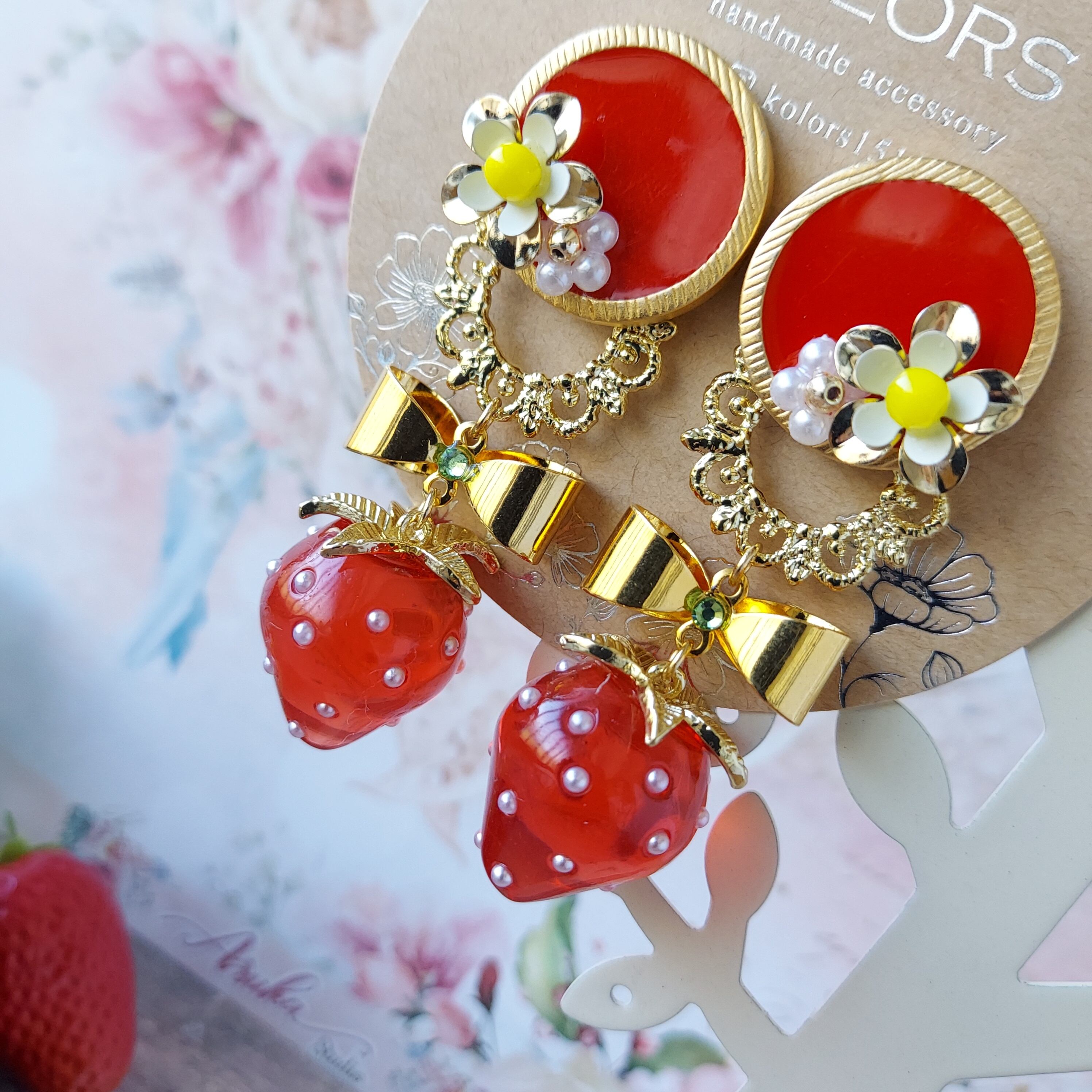 この商品は、毎日のコーディネートにぴったりなアクセサリーです。ドレッシーな装いにもカジュアルなスタイルにも合わせやすく、一つ持っておくと様々なシーンで活躍してくれます。ぷっくりしたイチゴが揺れる様子はとても可愛らしく、見るたびに幸せな気持ちになれますよ。