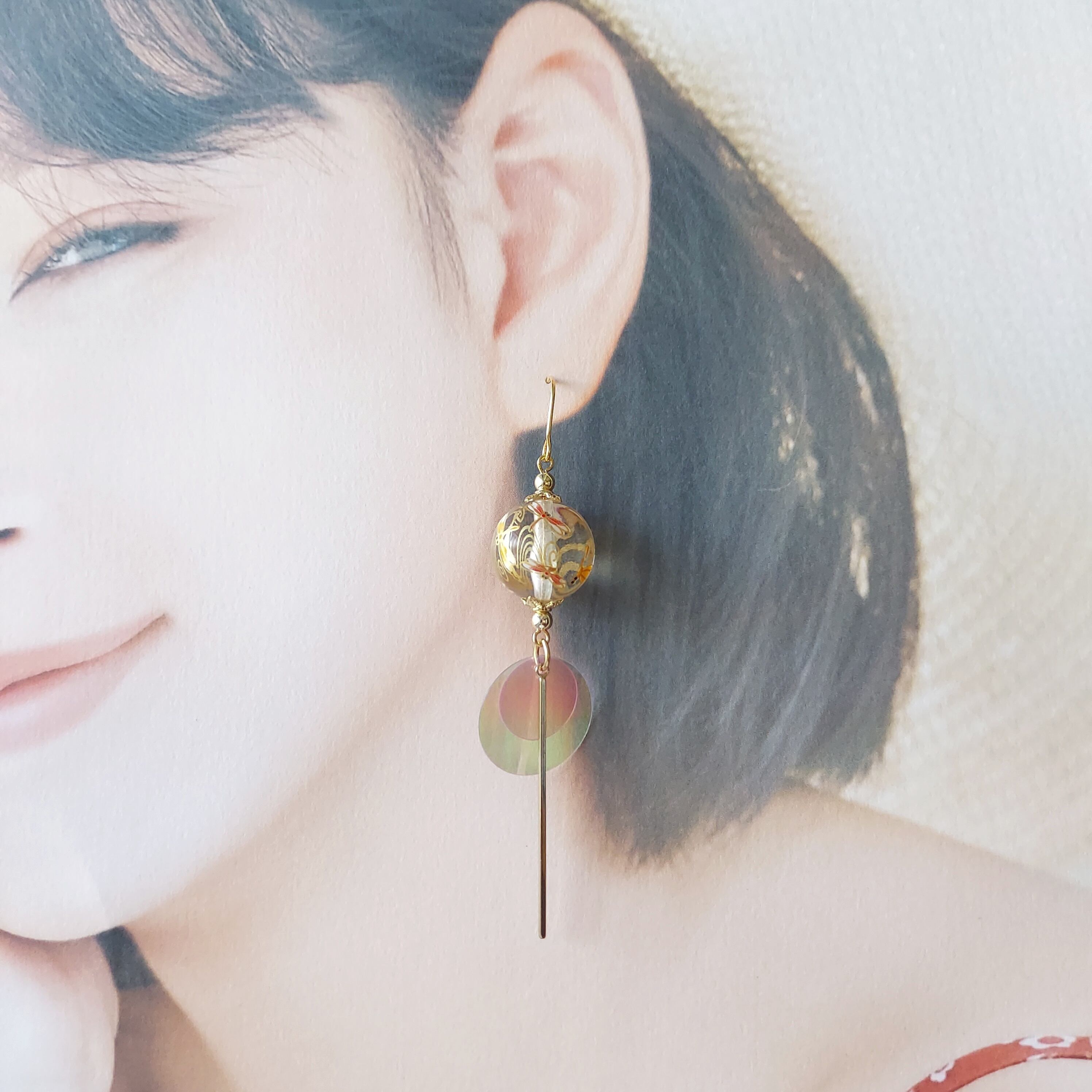 まるで秋の風に揺れる軽やかさも感じられるトンボ玉ピアス・イヤリング。ピアスイヤリング金具はアレルギー対応のサージカルステンレスで安心してご使用いただけます。