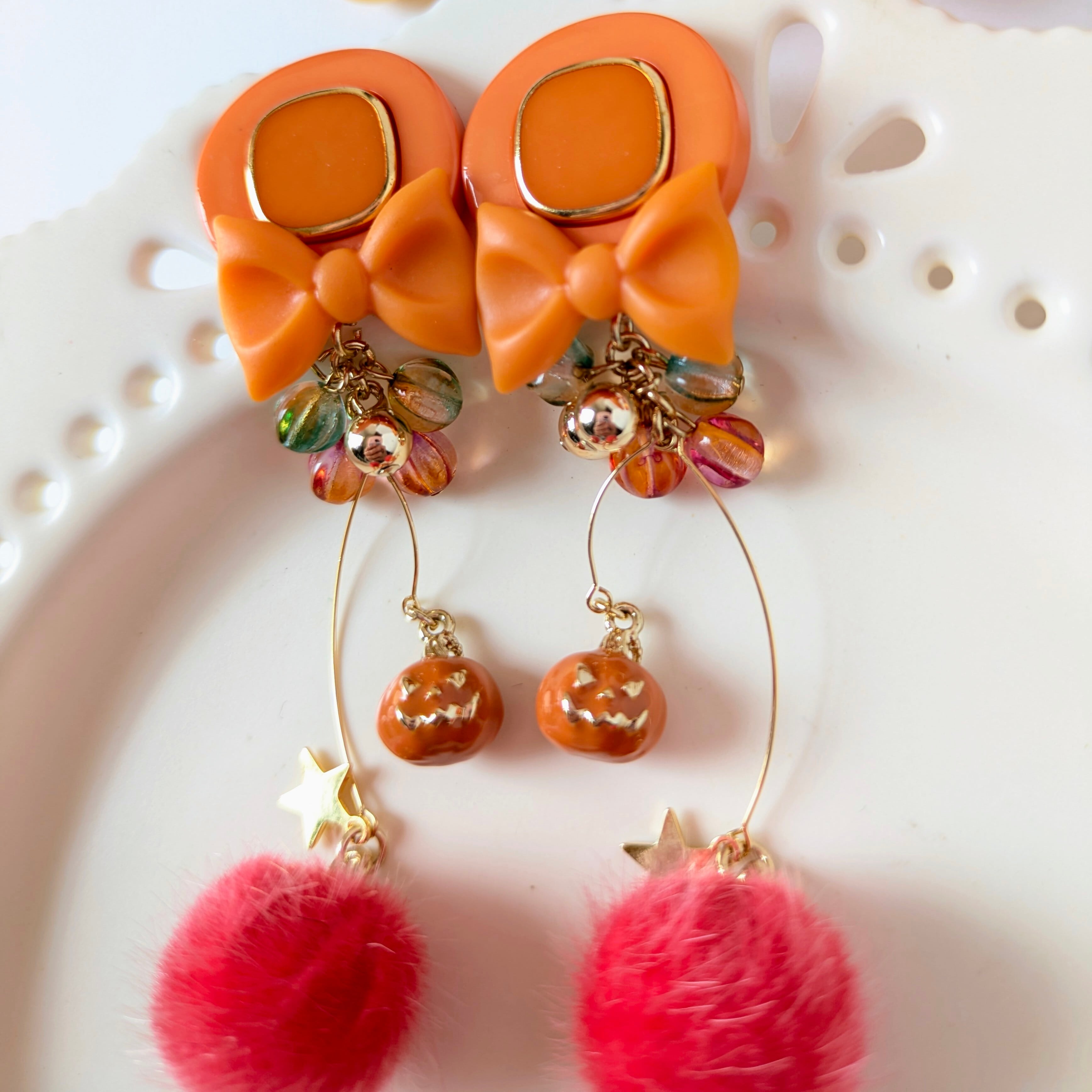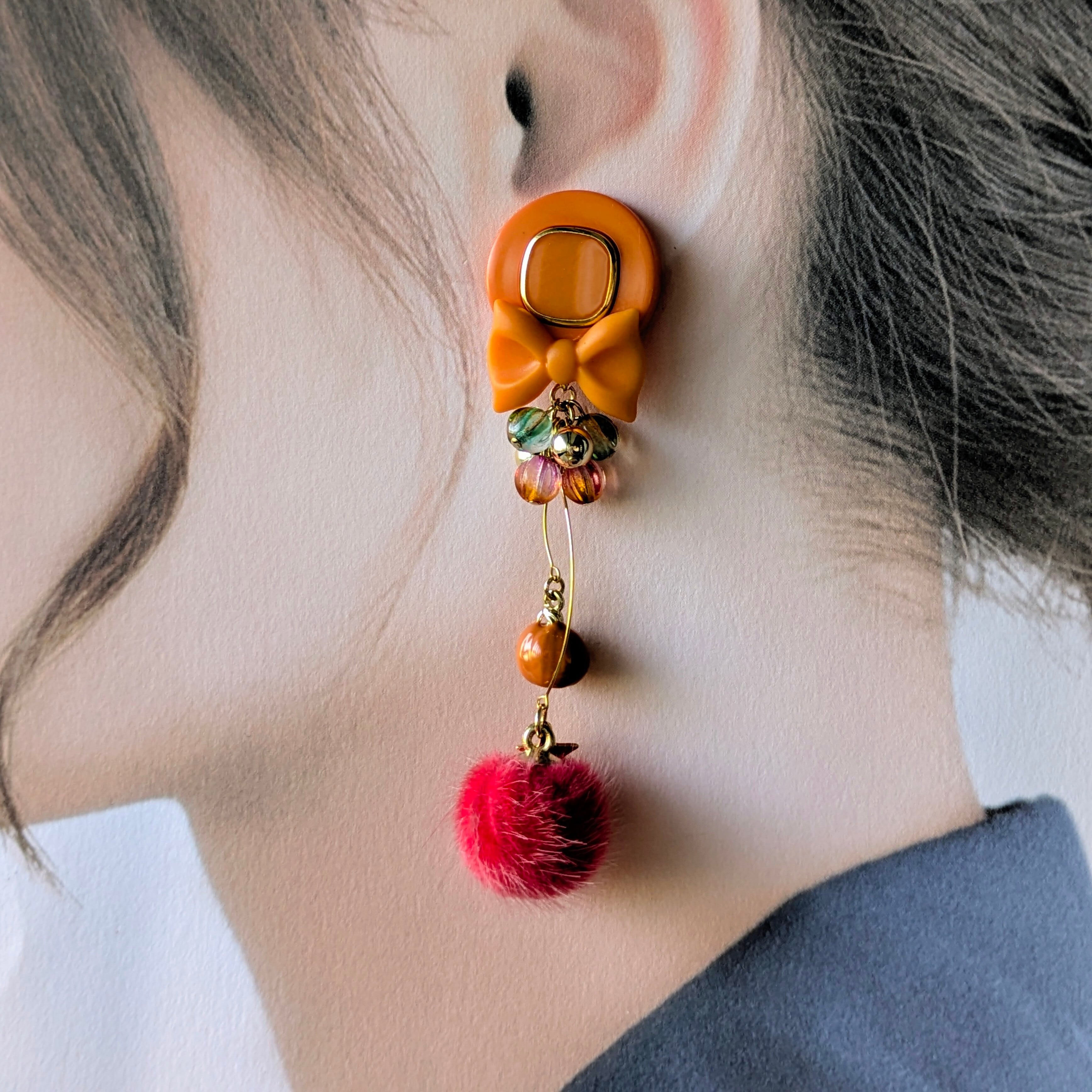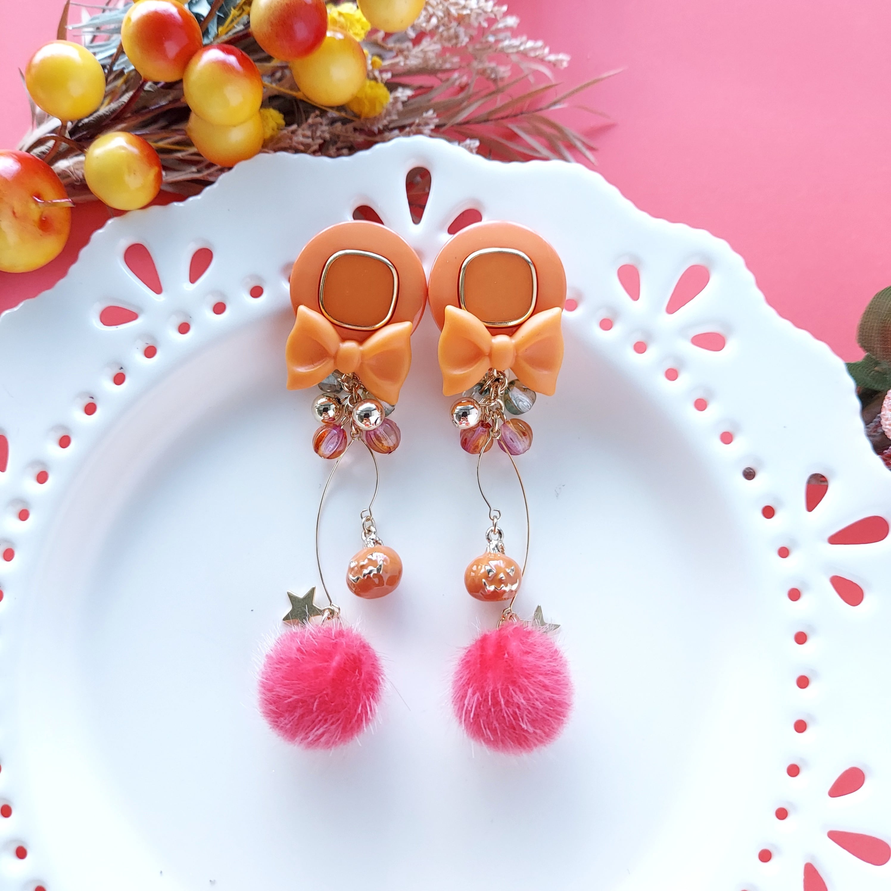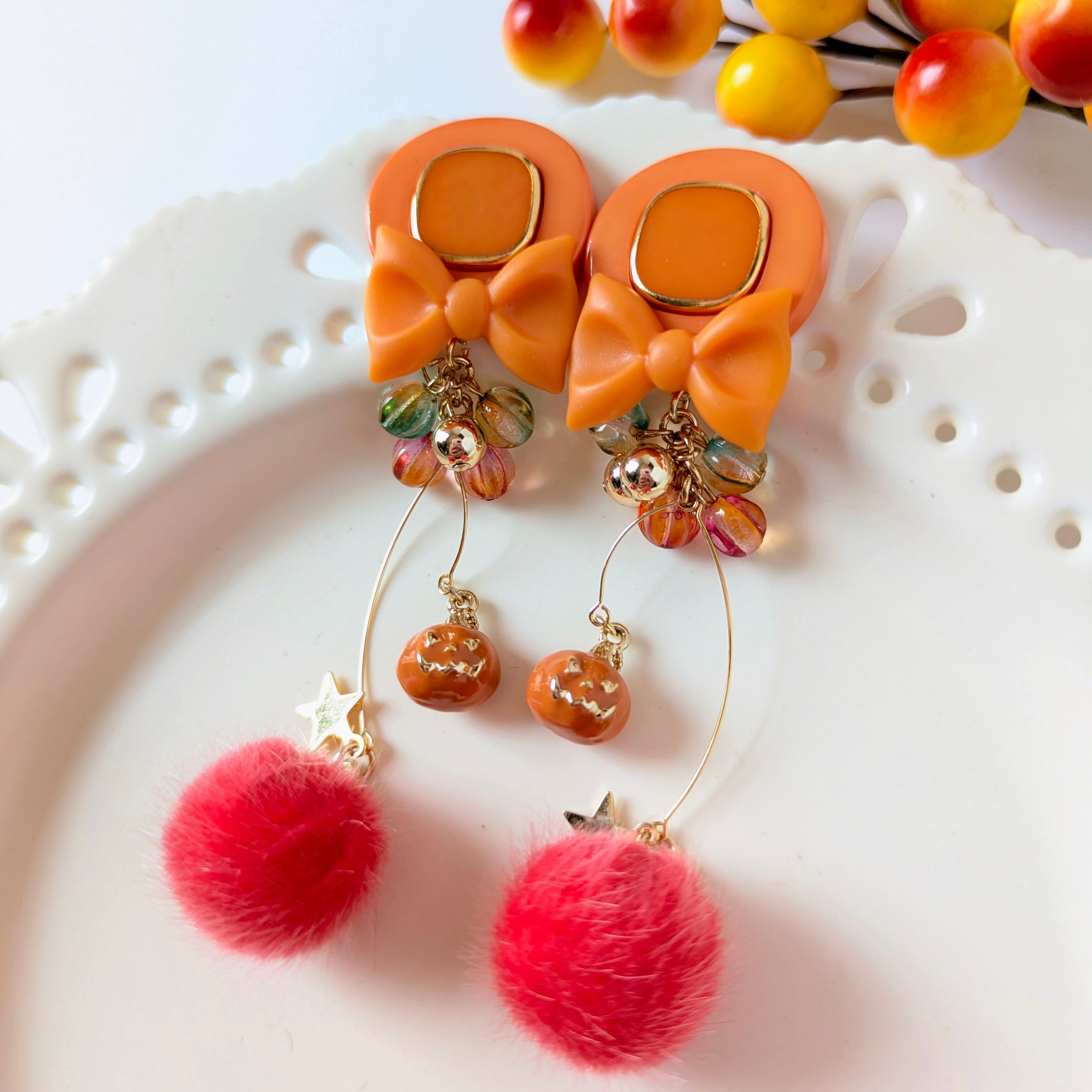 【コロコロミニカボチャ&レッド モコモコピアス・イヤリング】