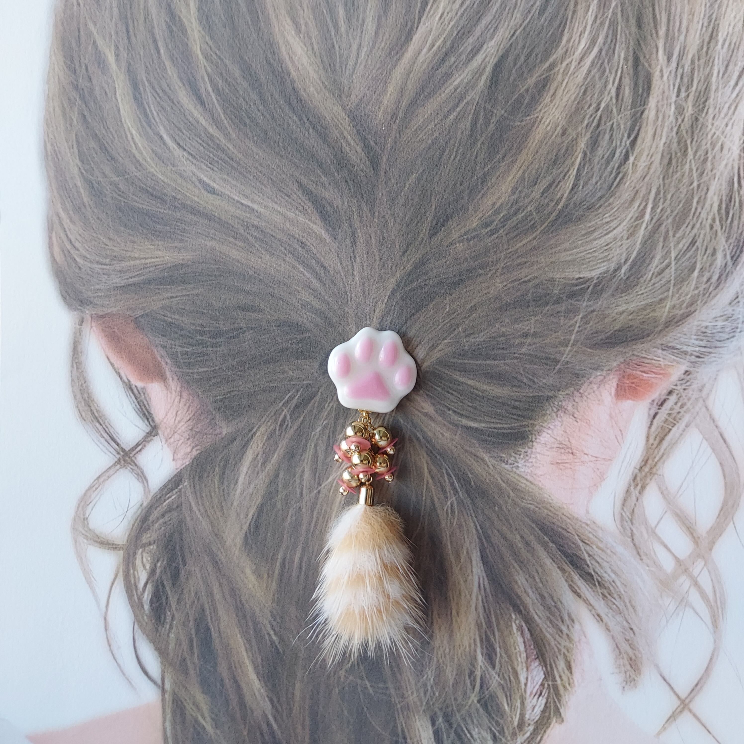【ペタペタ肉球と揺れる猫しっぽ ポニーフック】有料ラッピングあり